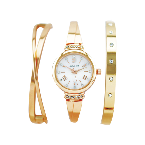 Finding matching accessories can be something of a nightmare for the modern woman, but Cristian Cole has solved that problem with this glittering watch and two bangles gift set. The watch itself is a standalone head-turner, with its pearly white face off set by a jewel encrusted case and with two stunning Jewellery-clasp closure bangles. This sparkly duo will complement any evening gown or cocktail dress, enabling her to shine on that next big occasion.